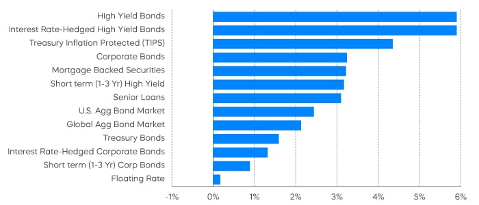 It was green across the screen in July, as a rally in U.S. Treasurys and tightening credit spreads drove prices higher across both government and corporate bond segments.