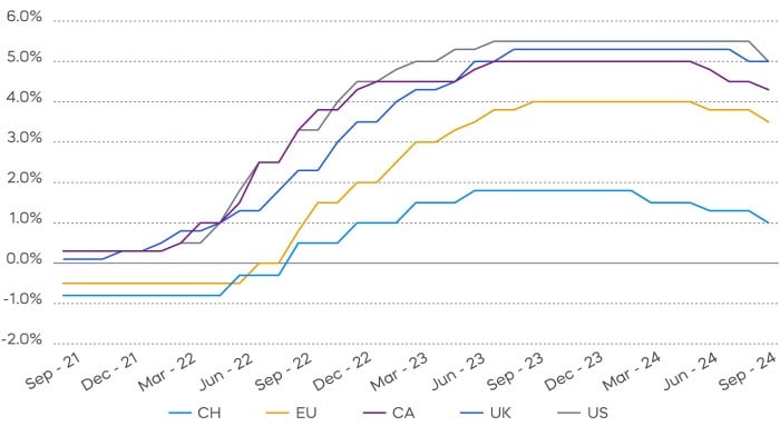 Policymakers in China delivered a series of stimulus measures, including reductions in short-term interest rates and required reserve ratio, new borrowing facility used for stock purchases, and support for the housing market. The MSCI China Index rallied 23% during the month, lifting emerging markets stocks and commodities to become the top-performing asset classes in September.