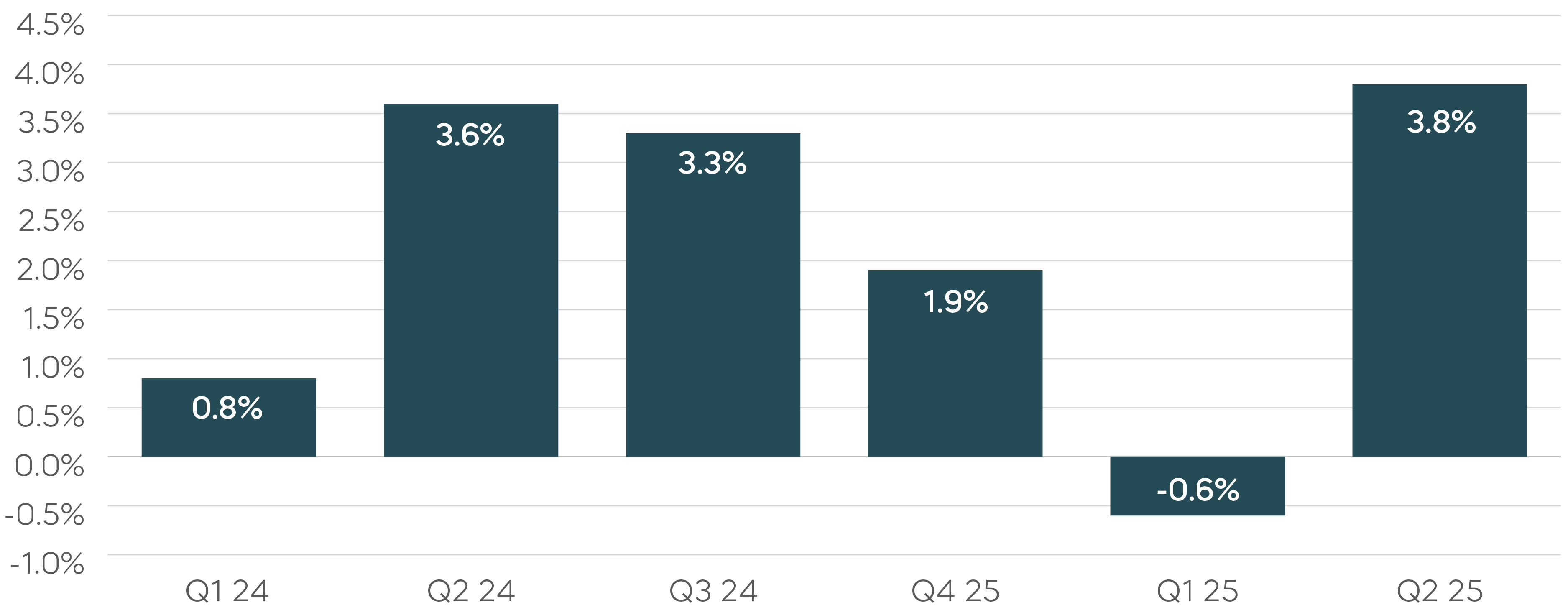 Source: Bloomberg. Data from 4/8/25 through 9/30/25. Index returns are for illustrative purposes only and do not reflect any management fees, transaction costs or expenses. Indexes are unmanaged, and one cannot invest directly in an index. Past performance does not guarantee future results.
